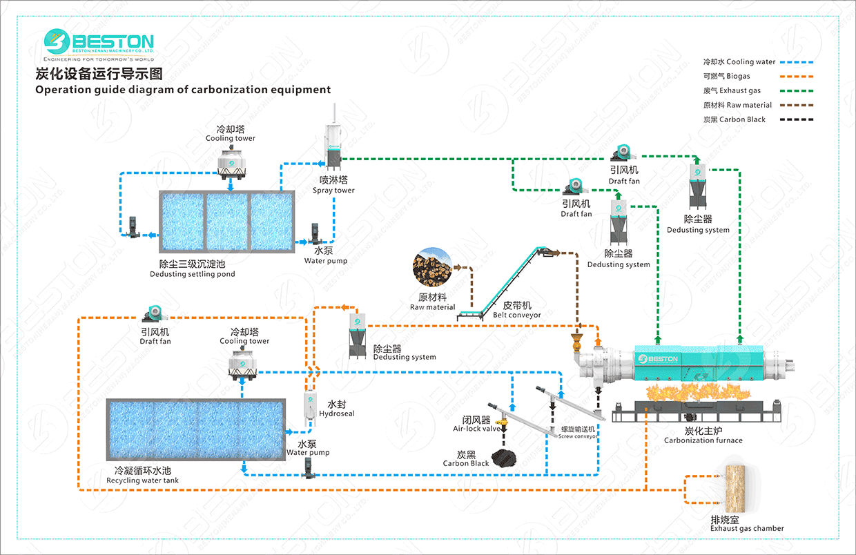 不收集焦油木醋的話是2個水池,一個冷凝一個除塵。收集焦油木醋的話是3個水池,一個冷凝一個除塵還有一個是焦油木醋收集池。...